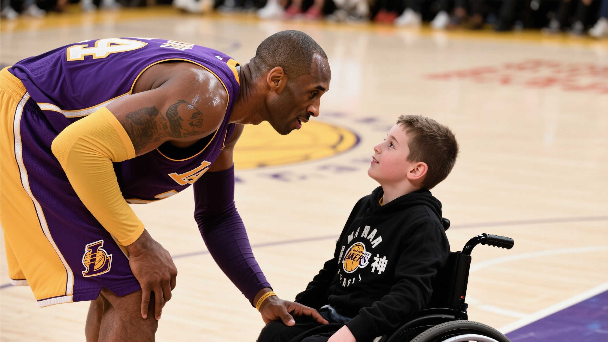 前言: 巅峰时刻的英雄不仅在赛场上展现无与伦比的技巧,更在生活中用行动传递温暖。科比·布莱恩特,这位篮球传奇如同耀眼星辰,用其坚韧不拔的“曼巴精神”影响着世界。在一次令人难忘的事件中,科比亲切地与一名轮椅上的年轻男孩交流,无数观众被他细腻的人性光辉所折服。这种力量不仅来自于他卓越体育成就,更是源于激励每一个奋斗者、梦想追求者的不屈信念。